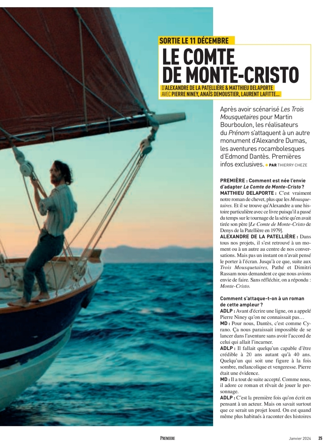 L'article du Film Français (paywall)."Comme des millions de lecteurs à travers le monde j’ai été marqué et transporté par le grand roman qu’est Monte-Cristo", explique aujourd’hui l’acteur en exclusivité pour Le Film Français. "L’ambition et la force du projet nous obligent autant qu’elles nous inspirent. Nous voulons créer un grand film d’aventure, de personnages mais surtout… de vengeance."
