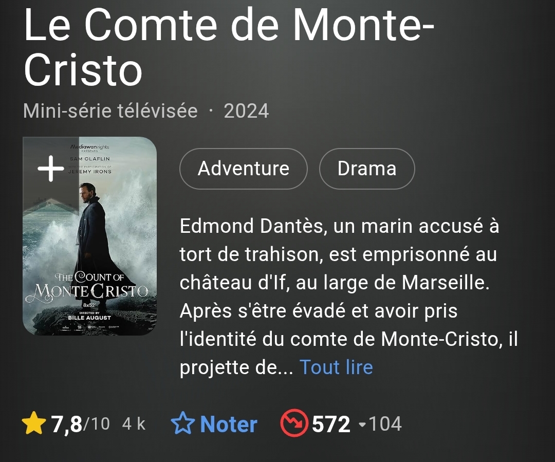 Probablement qu'ils attendent que le film FR Monte Cristo soit un peu oublié (dispo en ce moment sur Canal+).